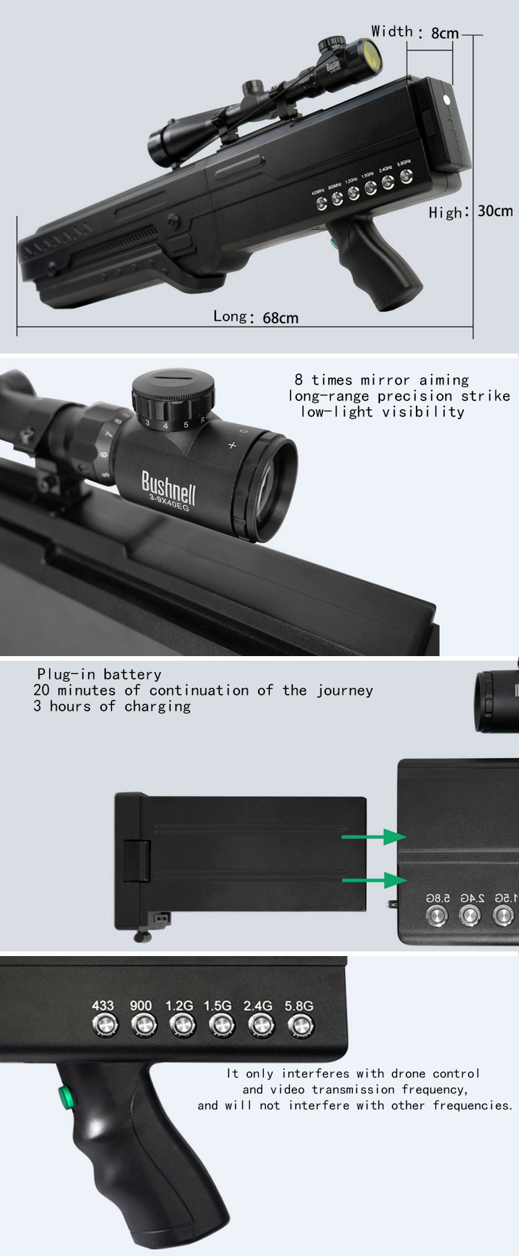 Handheld Full-Frequency Range Drone Anti-gun G2000