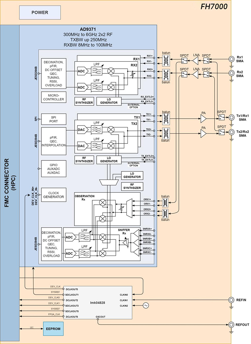 FH7000 16bit/14bit ADC AD9371 Communication RF FMC HPC Card